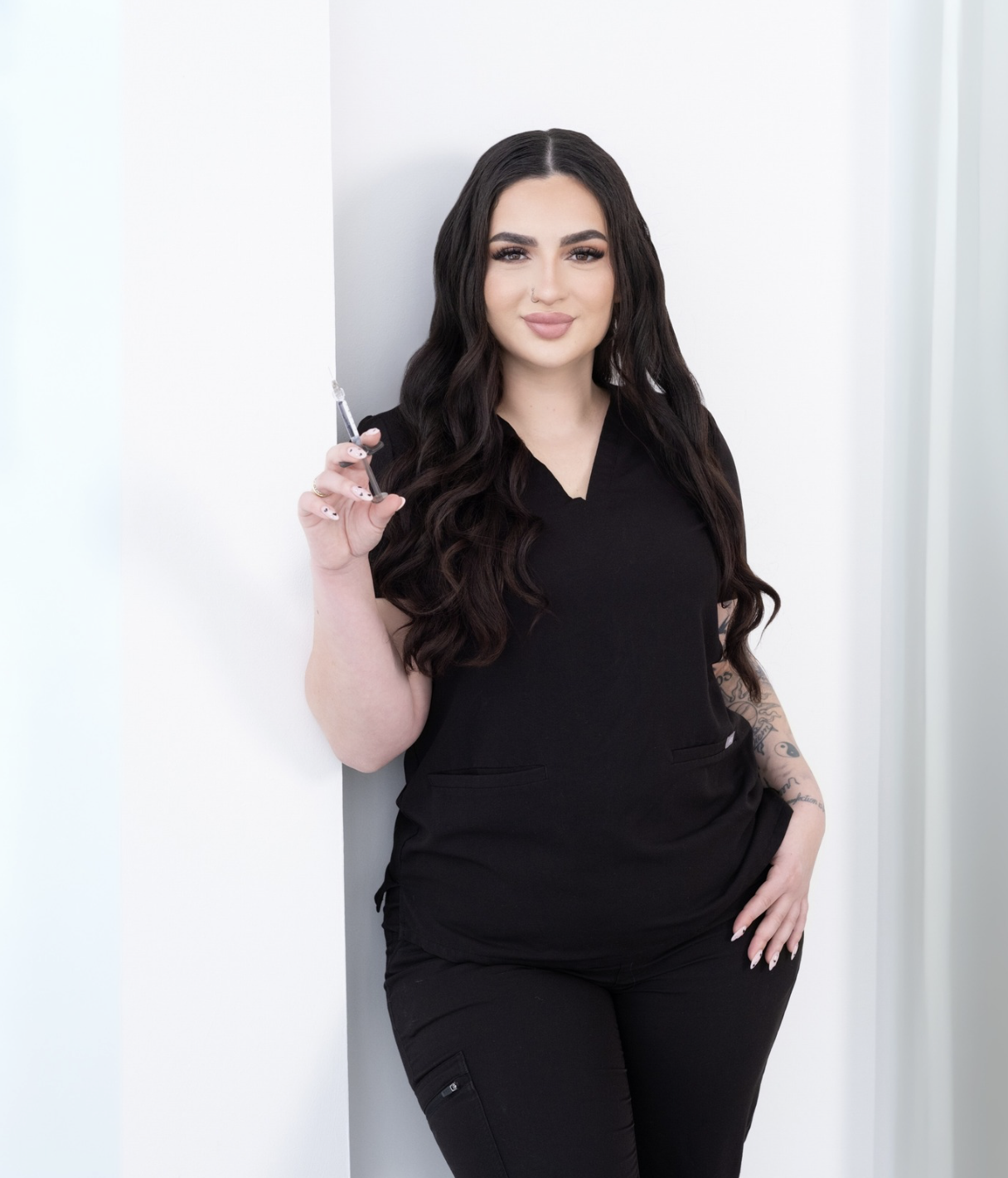 Today, she works as a full time injector, combining her medical background with a passion for artistry and education. She has trained internationally with leading experts, refining techniques that prioritize precision, safety, and balance. She completed a non-surgical nose correction course in England, holds both basic and advanced injectable certificates, and also trained in non-surgical BBL with Dr. Ducu.